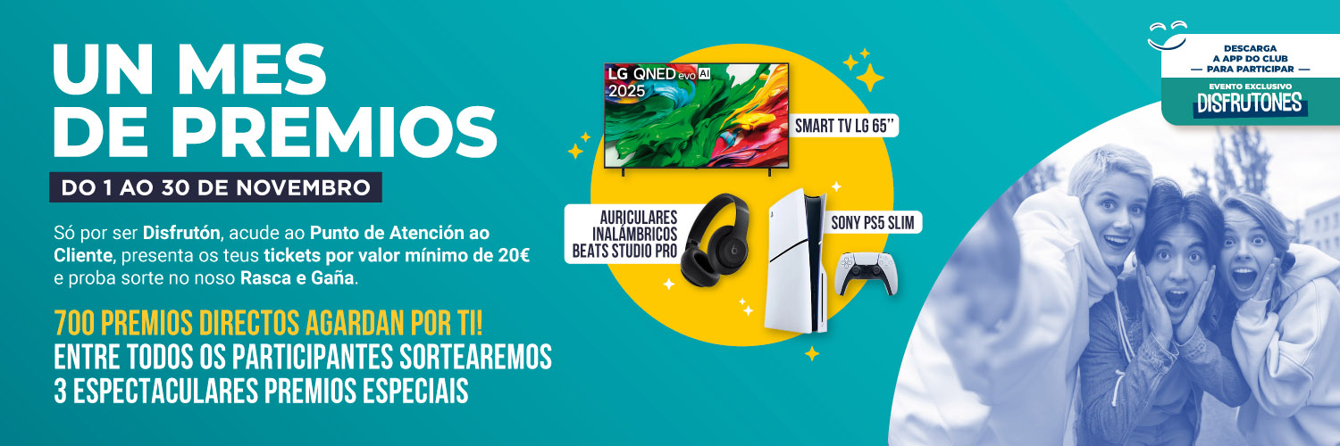 As túas compras de novembro poden ter premio! Trae os teus tickets de compras realizadas durante este mes en As Termas por valor maior ou igual a 20€ ao momento de Atención ao Cliente e poderás recibir premios directos.