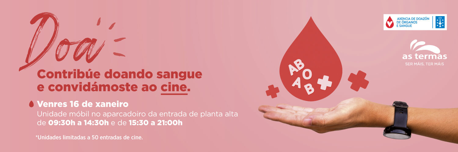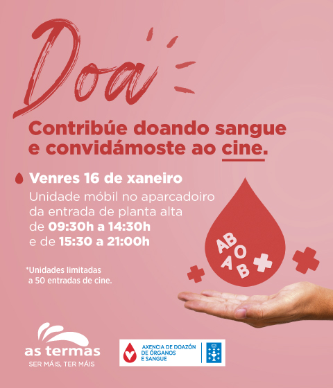 O venres 16 de xaneiro, de 9.30 a 14:30 e de 15.30 a 21:00h, a Axencia de Doazón de Órganos e Sangue (ADOS) estará no aparcadoiro de planta alta para atender a todas aquelas persoas que desexen achegar o seu graniño de area doando o seu sangue.